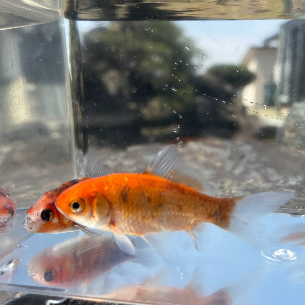 (他種)-ゆったり泳ぐ金魚の品種とは一緒に飼わない方がよいでしょう(らんちゅう、出目金等)