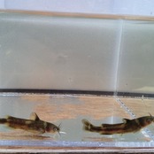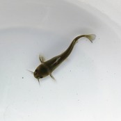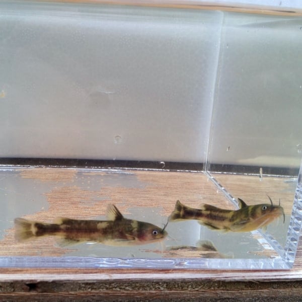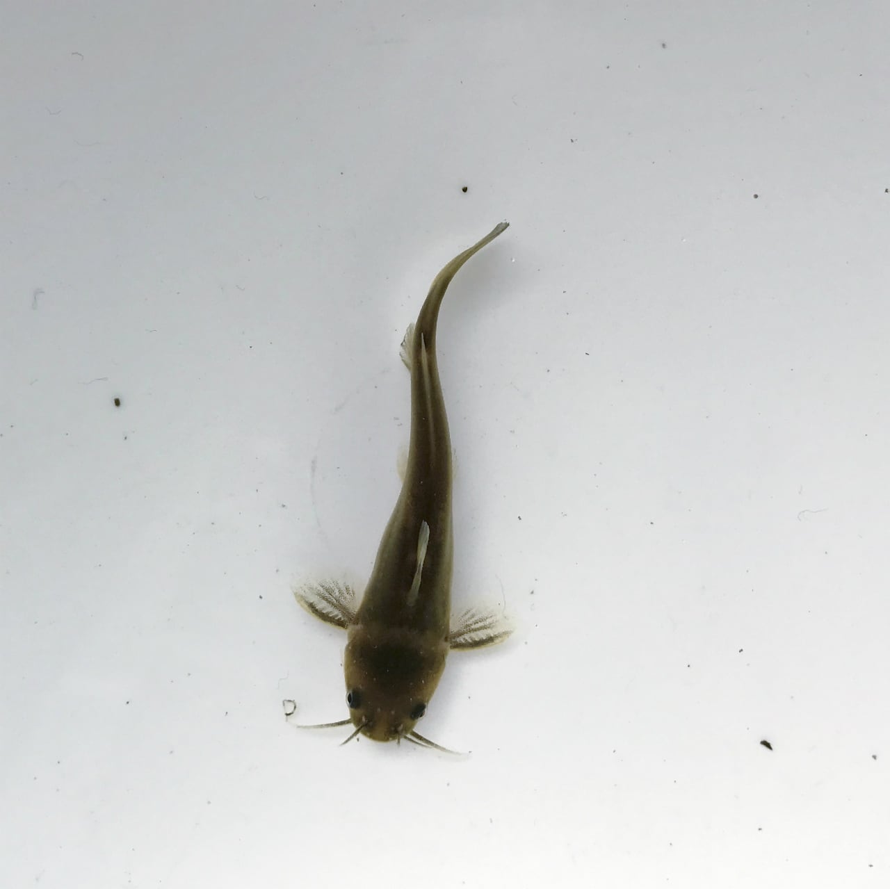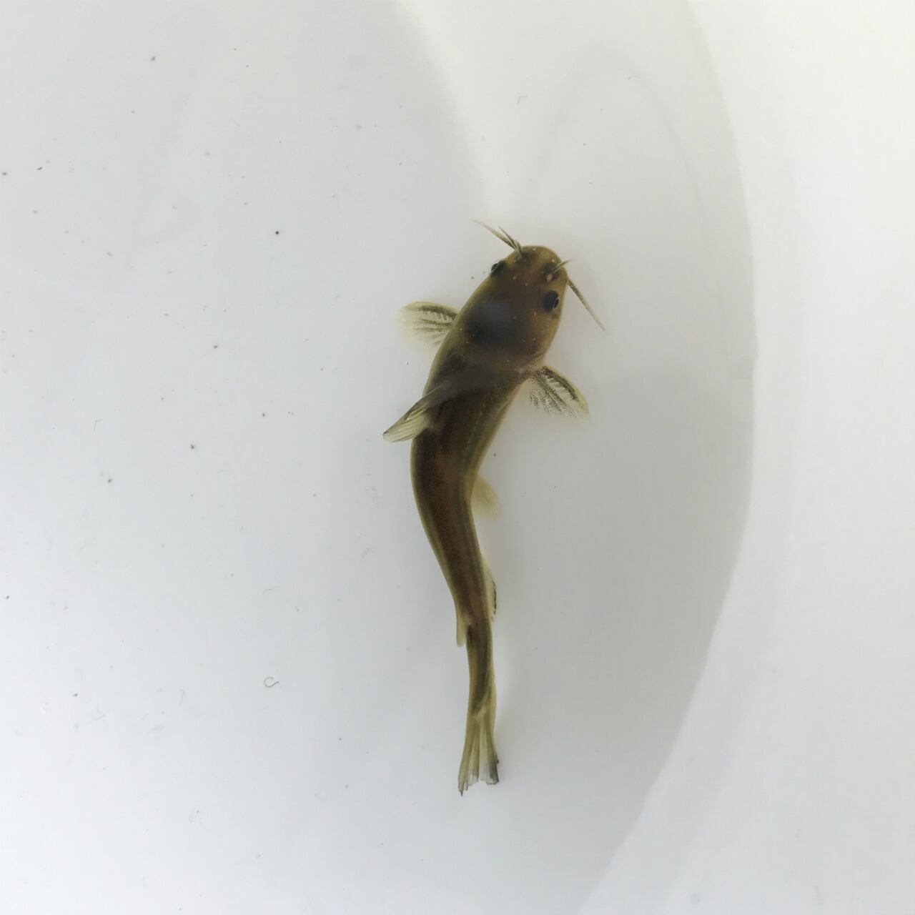 ギバチは富山県、神奈川県以北の本州に分布しています。鱗がなくつるんとした体表で、胸鰭・背びれには棘があり、吻は全体的に丸みを帯びています。体色は、幼魚では透明感のある茶色に黄色のまだら模様が見られ、成魚では茶褐色、黒褐色と、成長とともに変化します。上流部の小川に生息していることが多く、年間を通して比較的低い水温で生活しています。また、ヒガシシマドジョウやアブラハヤ、ジュズカケハゼが同所で見られることがあります。自然界ではエビや小型の魚、水生昆虫などを食べています。